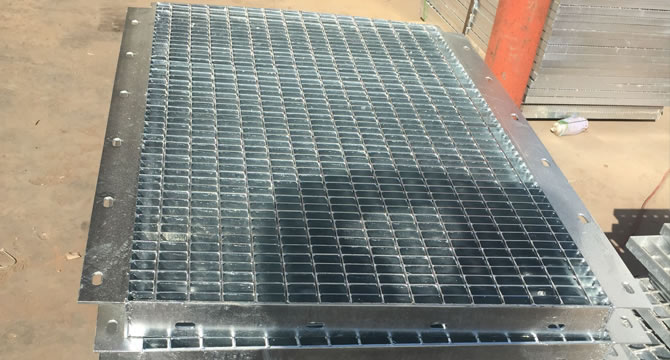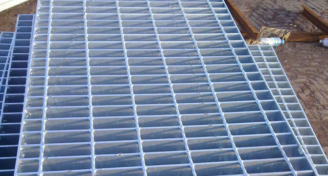 鍍鋅格柵板是由負載扁鋼和橫桿按一定間距經(jīng)緯排列,在高壓電阻焊機上焊接而成原板,經(jīng)切割、切口、開(kāi)孔、包邊等工序深加工而成客戶(hù)要求的成品。